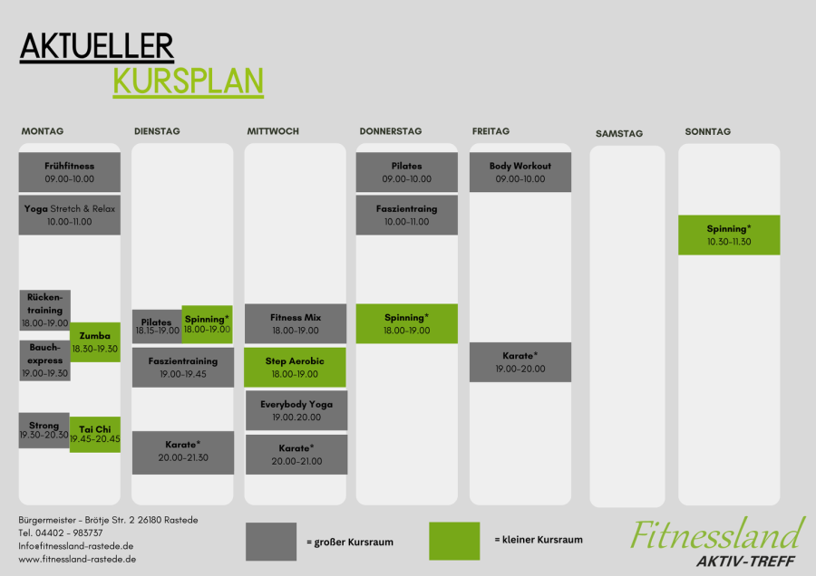 Alle anderen Kurse können ohne Anmeldung besucht werden.